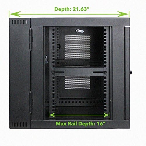 VERSATILE & SPACE EFFICIENT – This 9U server cabinet is compatible with 19″ IT, server, and A/V equipment, making it adaptable to various project requirements. It can be conveniently utilized as a free-standing or wall-mounted unit, optimizing available space. Measuring 23.63″L x 23.63″W x 19.88″H with a depth of 600mm, this IT enclosure provides 9U of rack space, catering to varying server and switch depths.